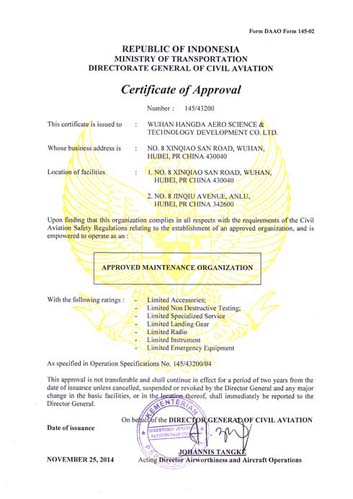我們擁有CAAC、FAA、EASA以及多國和地區(qū)的維修資格證書