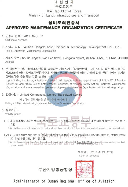 2019年11月  徑河廠區(qū)獲得CAAC、FAA維修許可。